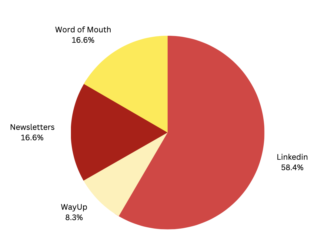 3 live interviews: 1 person said they use LinkedIn, while the other 2 use LinkedIn, newsletters, and word of mouth.